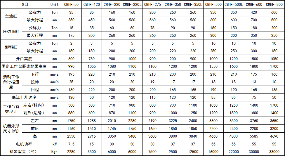 上打料缸: 活動工作臺設有上模脫料油缸。